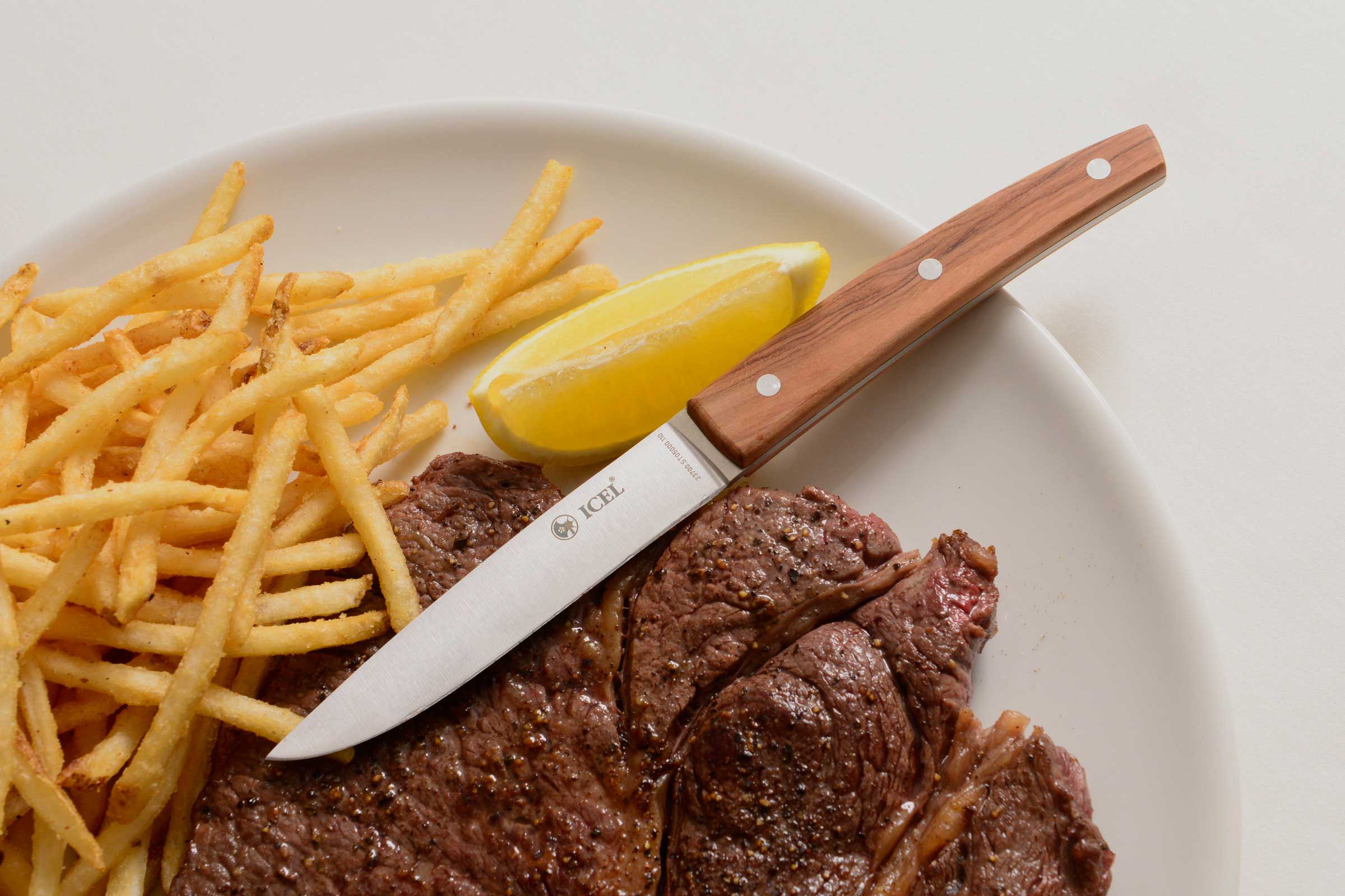 刃物メーカーが作る卓上のナイフは頑強な作りで抜群な切れ味です。それぞれハンドル部分は淡い色味が清潔感のあるメープル、密度が高く木目の美しいオリーブウッド、茶褐色の落ち着いた色味のローズウッドの3種のナチュラルウッドを使用。モダンでシャープなデザインはお持ちのフォークと組み合わせる他、カッティングボードに盛り付けたチーズやサラミなどの切り分けにもご使用いただけます。