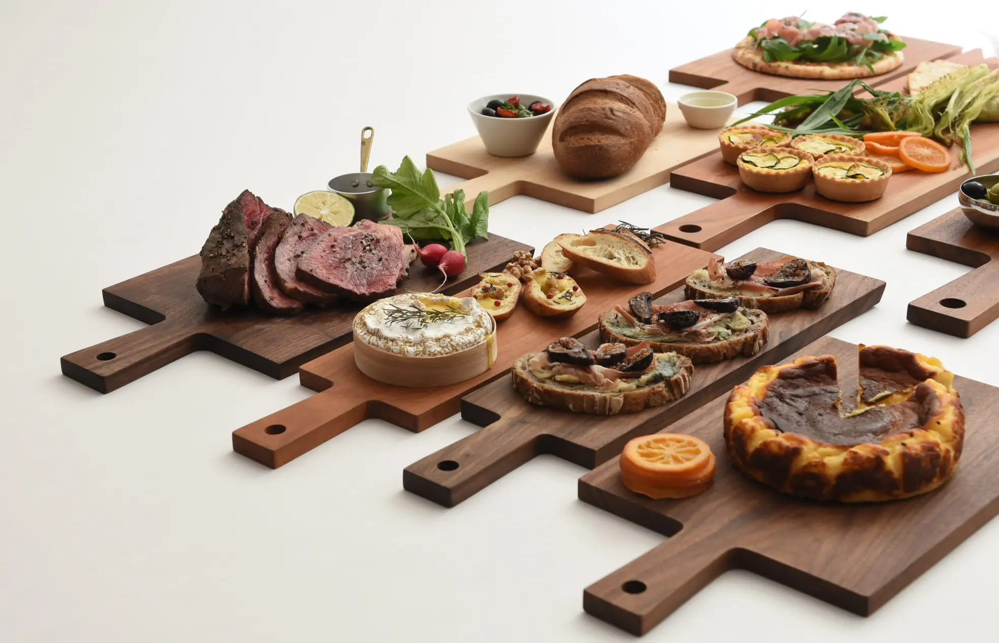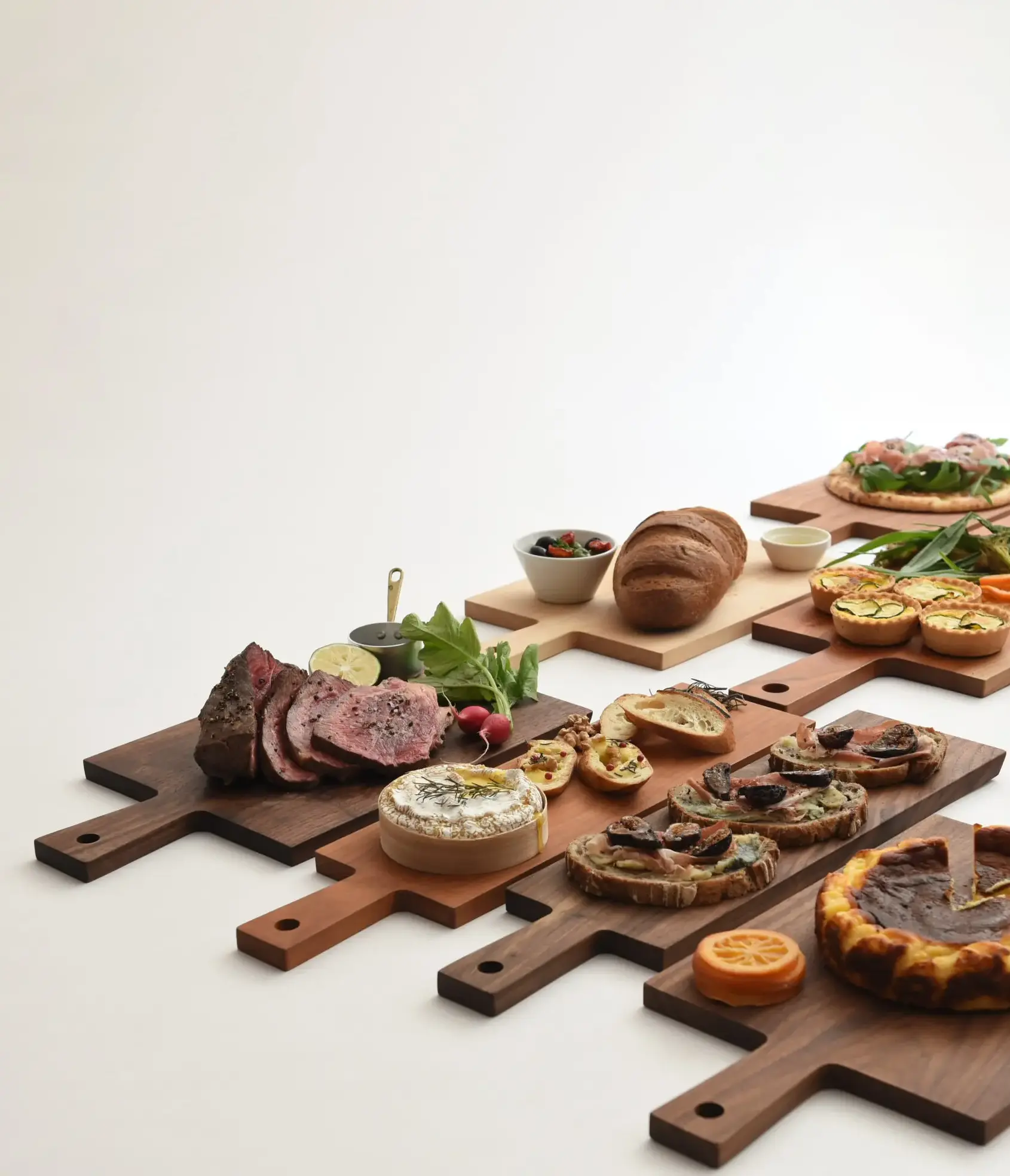 カナダやアメリカを産地とする広葉樹を使用し、福岡県大川市で加工したカッティング / サービングボード。 一枚板からできたシンプルなボードは継目がなく、それぞれの自然な木目が活かされた仕上がりで一枚、一枚異なる風合いをお楽しみいただけます。 手軽にパンやオードブル、フルーツ等を盛り付けてそのまま食卓で切り分けることができるので、忙しい朝などにもおすすめです。made in Japan