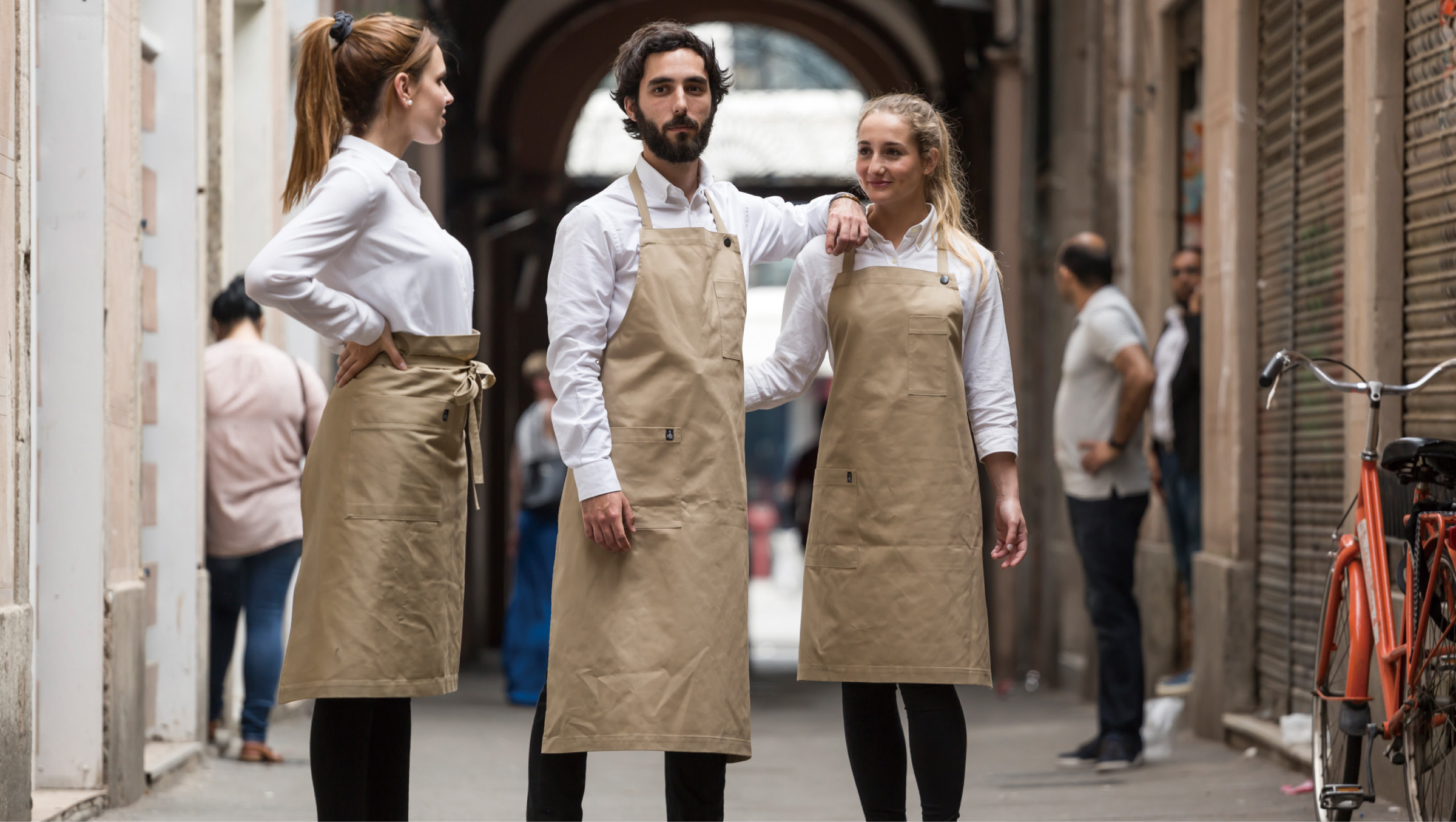 1888年創業。仕立屋が衣料品をつくる時代にプロの調理人を始め、その周りで働く人のための業務用ユニフォームを提供する店を開く。
