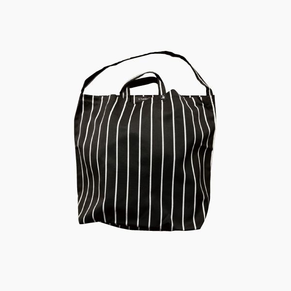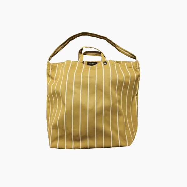 人気の仕立て屋の作るエプロンと同素材のグローサリーバッグ。 内ポケットつきで、お財布などを入れてこのままお買い物に。手提げと肩掛けの2通りの持ち手がつき、マチがついているため、たくさんの食材を入れても重さに耐えられ丈夫です。 コンパクトに折りたためるため、バッグにいつも常備しておくこともできます。 ※布の取り都合により縞模様が写真と異なる場合があります。