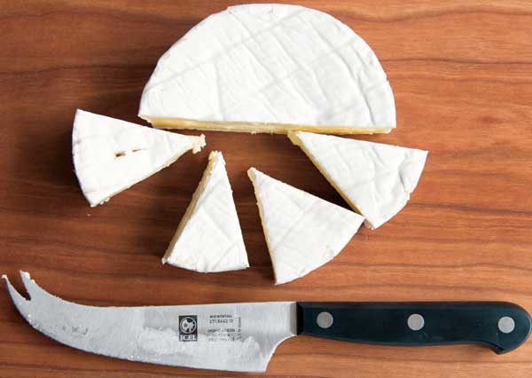 カマンベールなどの白カビチーズを切り分けるのに適したナイフです。先端部分は切り分けたチーズをピックのように突き刺してサービスするためのもの。