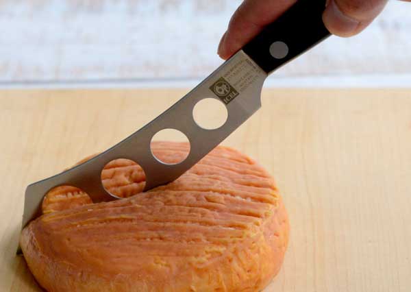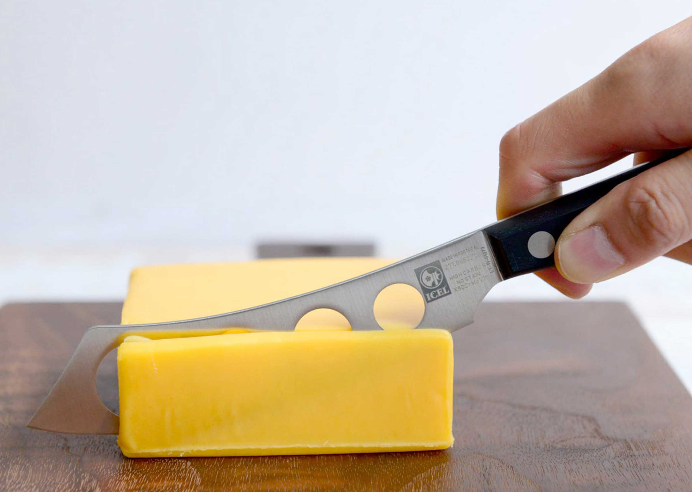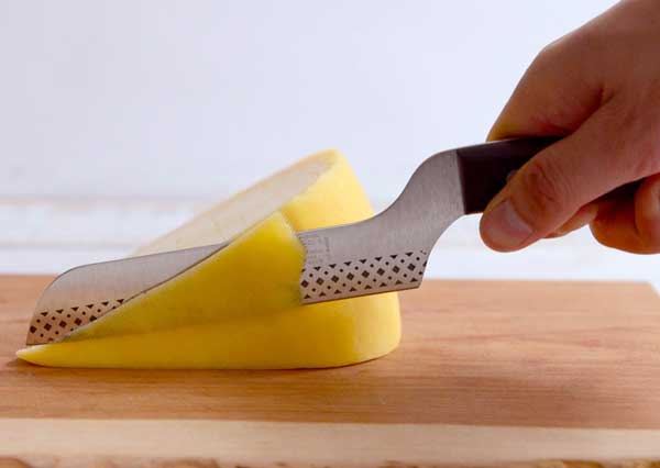 穴があいているため、チェダーなどのくっつきやすいチーズも程よく離れ、ストレスを感じることなく切り分けのできるナイフです。