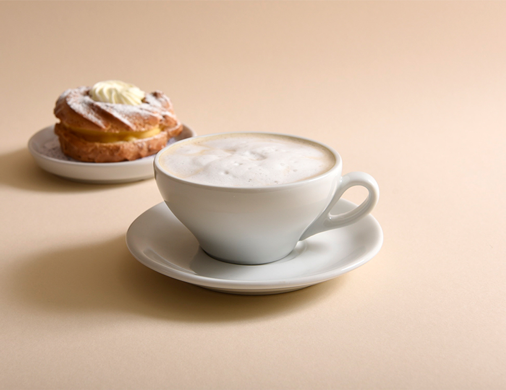 ぽってりと丸みがあり口径の広いカプチーノカップは、ラテアートにピッタリな形状です。