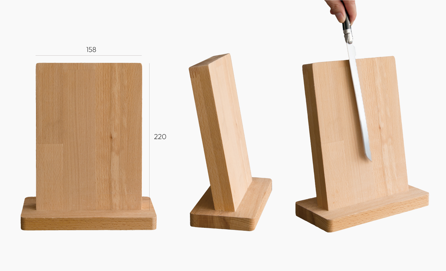 ペティナイフやブレッドナイフ、包丁などのナイフ類をスッキリまとめるビーチウッド(ブナ)製マグネット式ナイフスタンド。 使いたい時に即座にお気に入りのナイフを取り出せ、調理もはかどります。シンプルなデザインは安定感があり、オープンキッチンに最適です。
