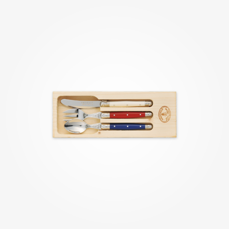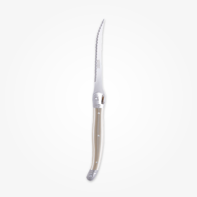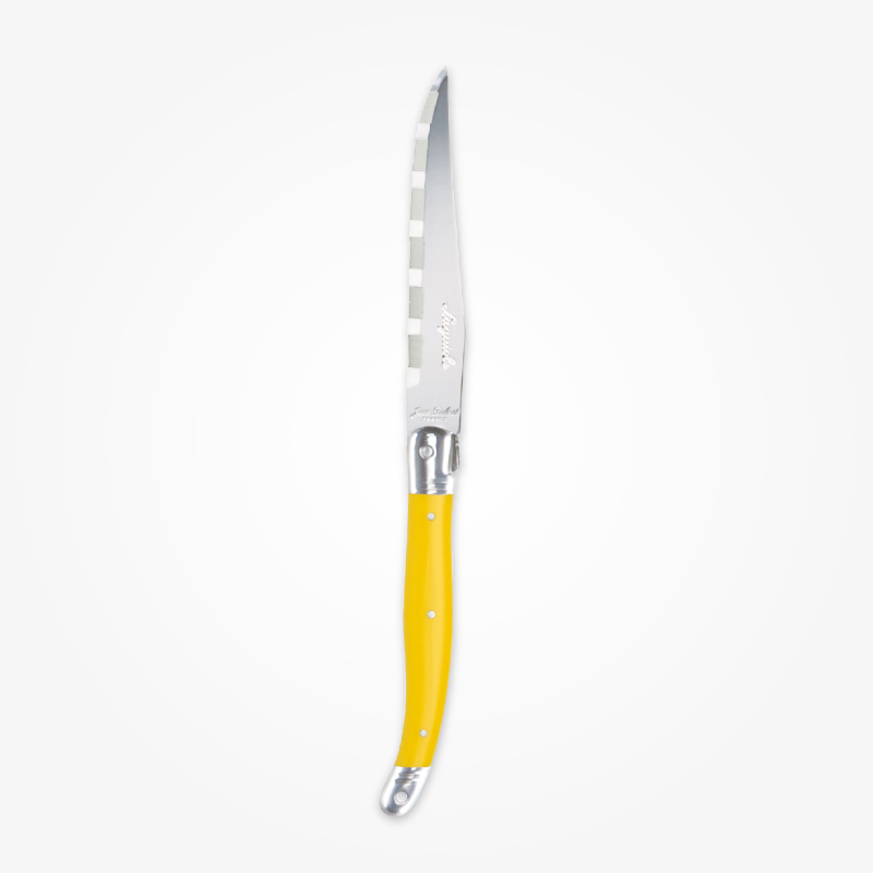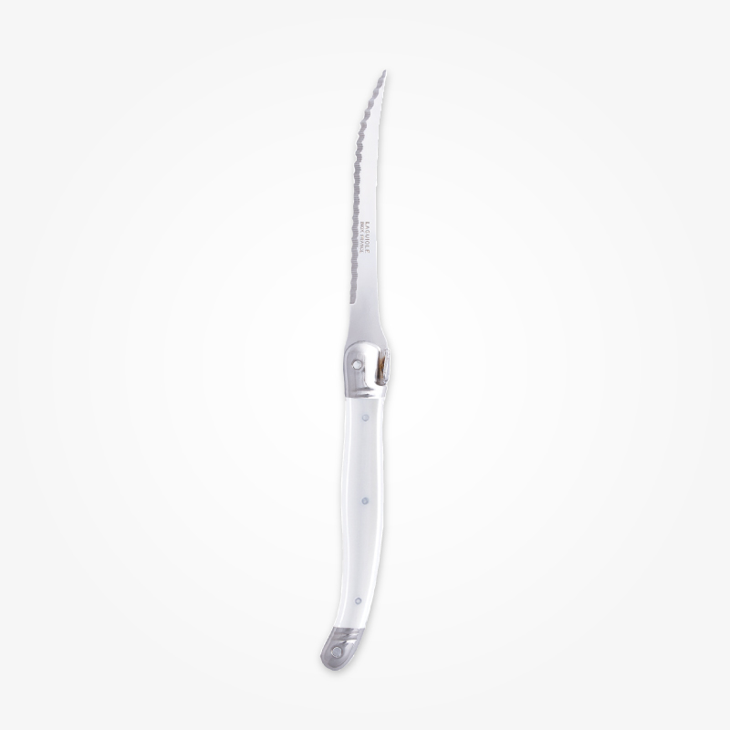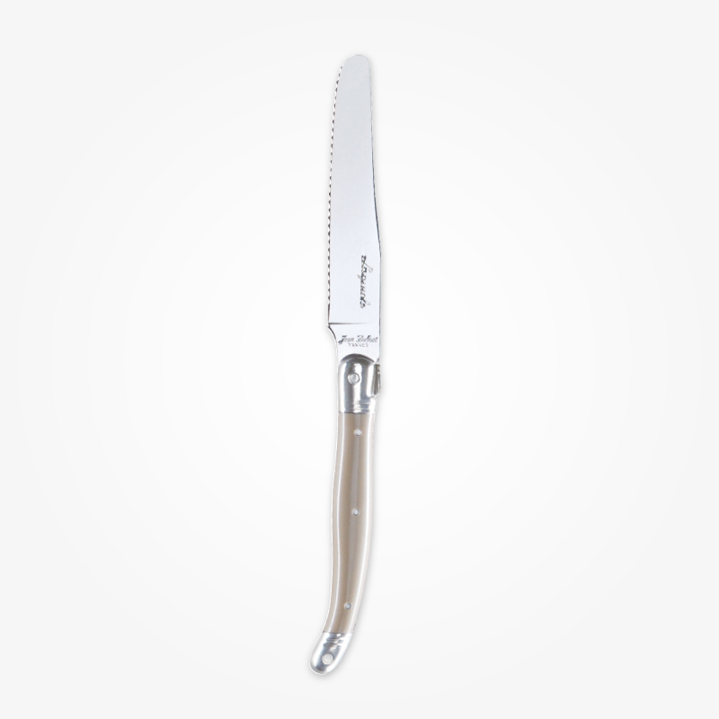 ライヨールの歴史は20世紀後期に人気を博したポケットナイフ(もともと男性の護身用のナイフとして使われた折りたたみ式ナイフ)より始まり、 その後ソムリエナイフやブレッドナイフ、フラットウエアなどに及び親しまれています。 ジャン・デュボ社のライヨールはクラシックでありながらカジュアルに食卓を楽しくコーディネートできます。