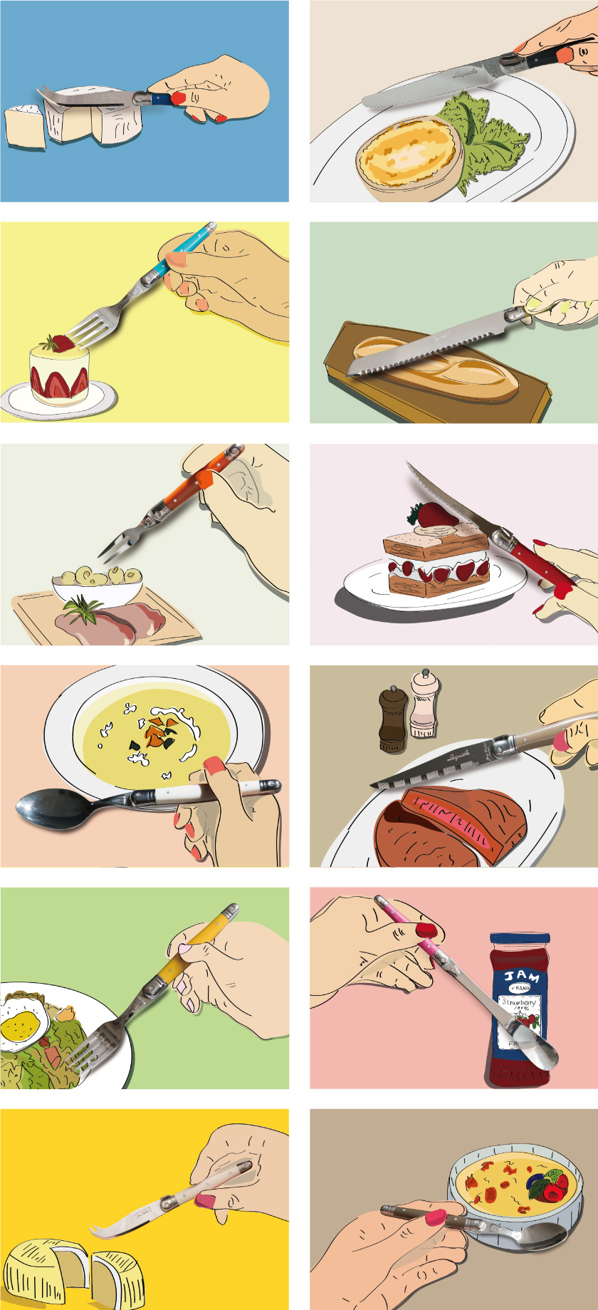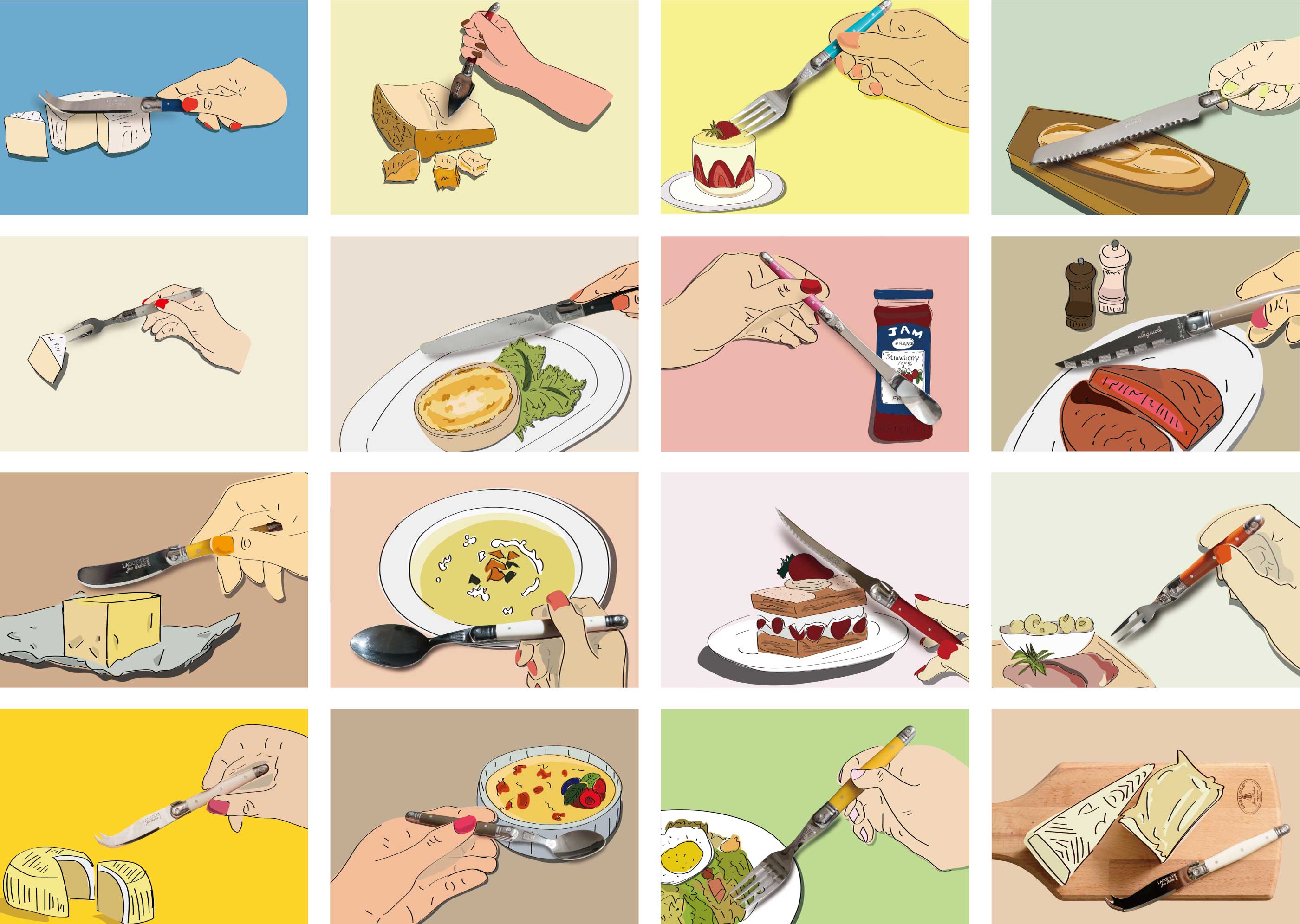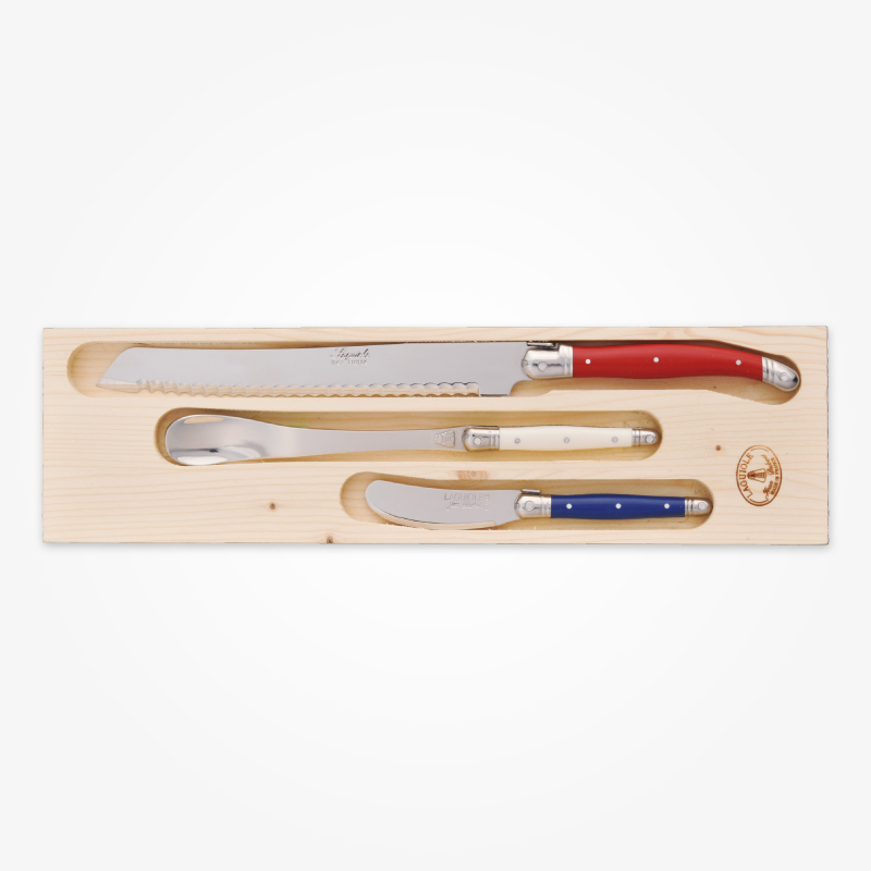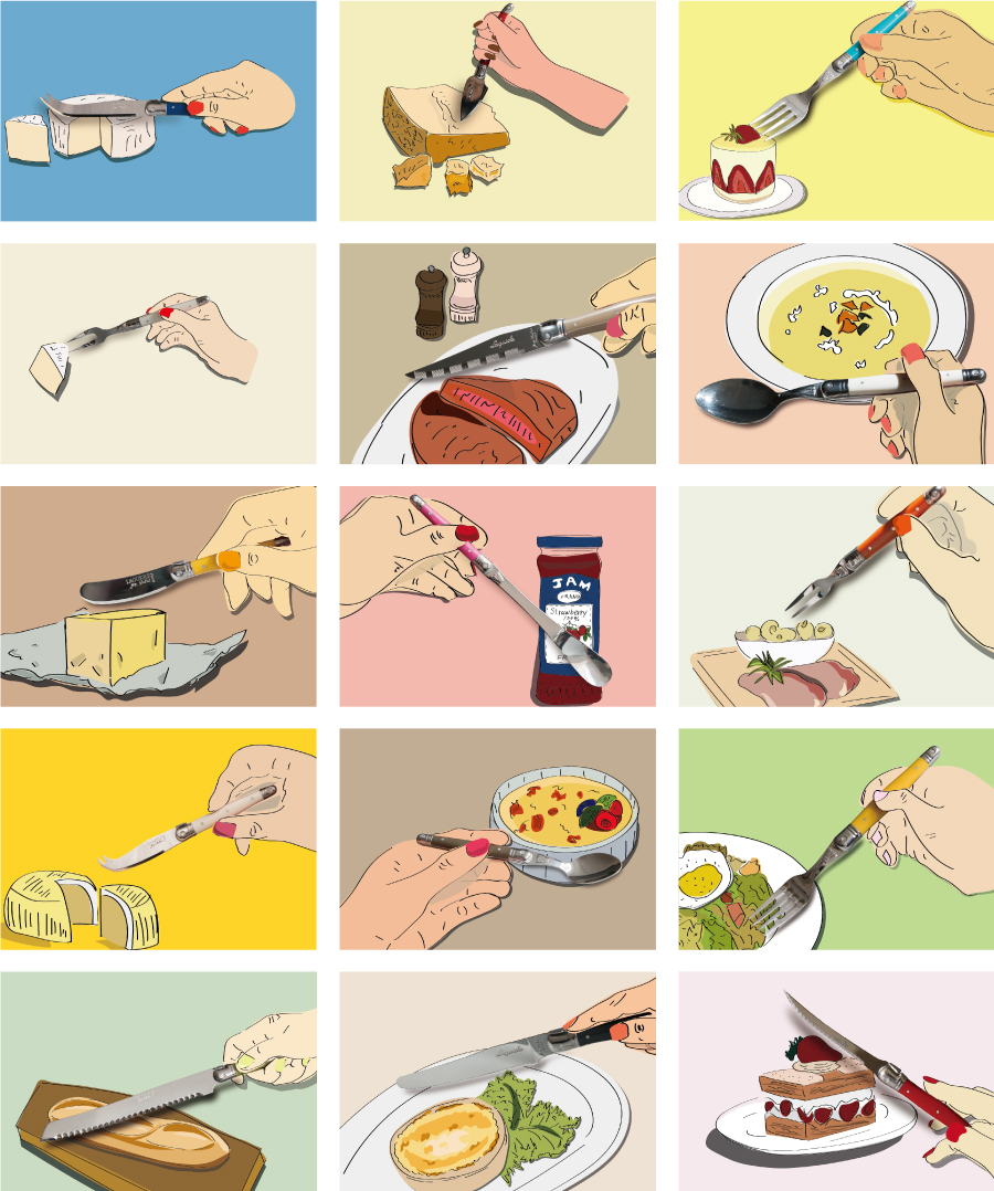 ライヨールの歴史は20世紀後期に人気を博したポケットナイフ(もともと男性の護身用のナイフとして使われた折りたたみ式ナイフ)より始まり、 その後ソムリエナイフやブレッドナイフ、フラットウエアなどに及び親しまれています。 ジャン・デュボ社のライヨールはクラシックでありながらカジュアルに食卓を楽しくコーディネートできます。