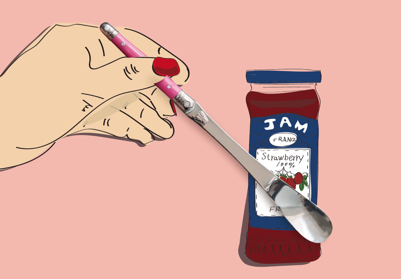 柄が長く瓶の底まで届きます。手元がベタつかず、ジャム等が塗りやすくマドラーとしてもご使用いただける形状です。