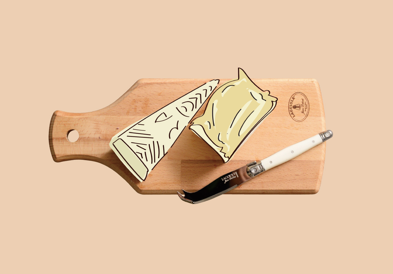 コンパクトなボードはアペリティフのお供に数種のチーズやドライフルーツなどを盛り付けるプレートに最適です。セットのミニチーズナイフはトリコロールカラーの3色からお選びいただけます。