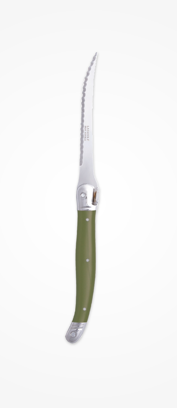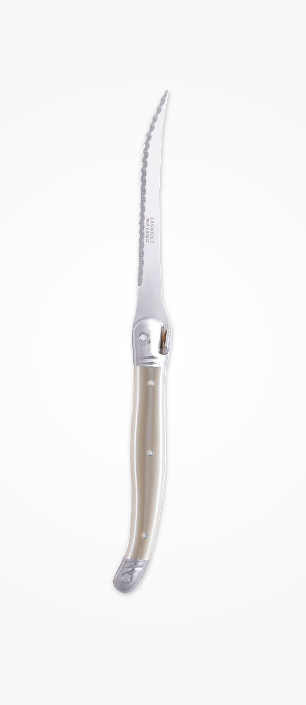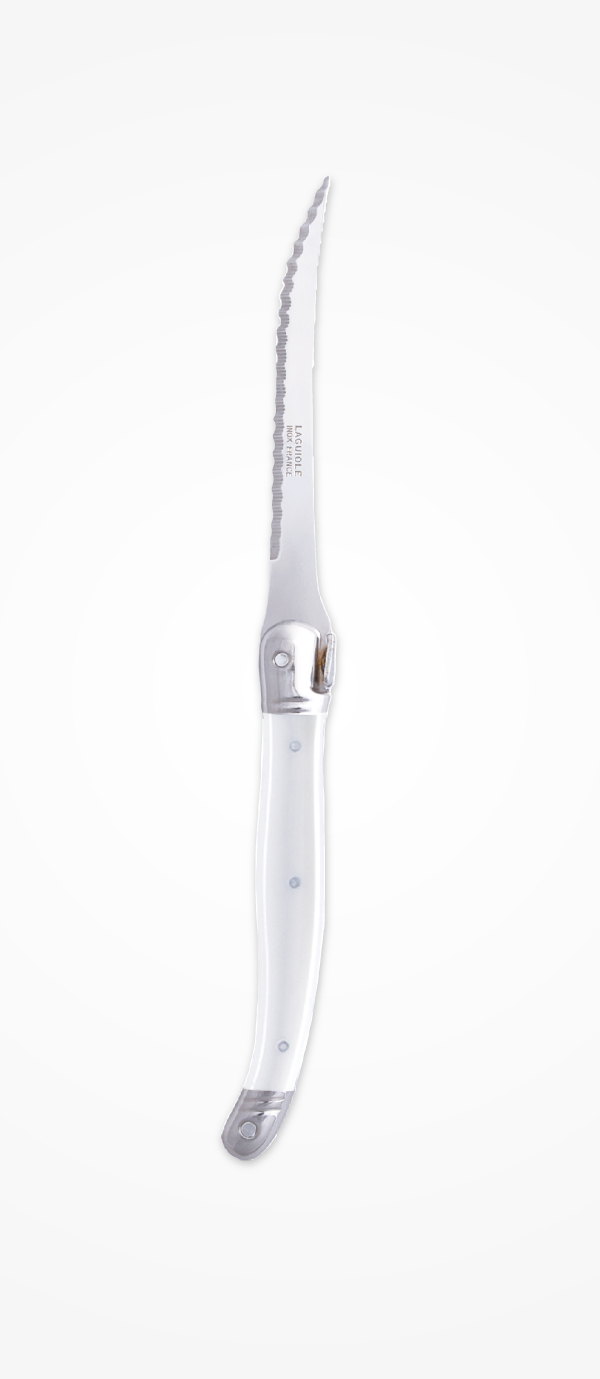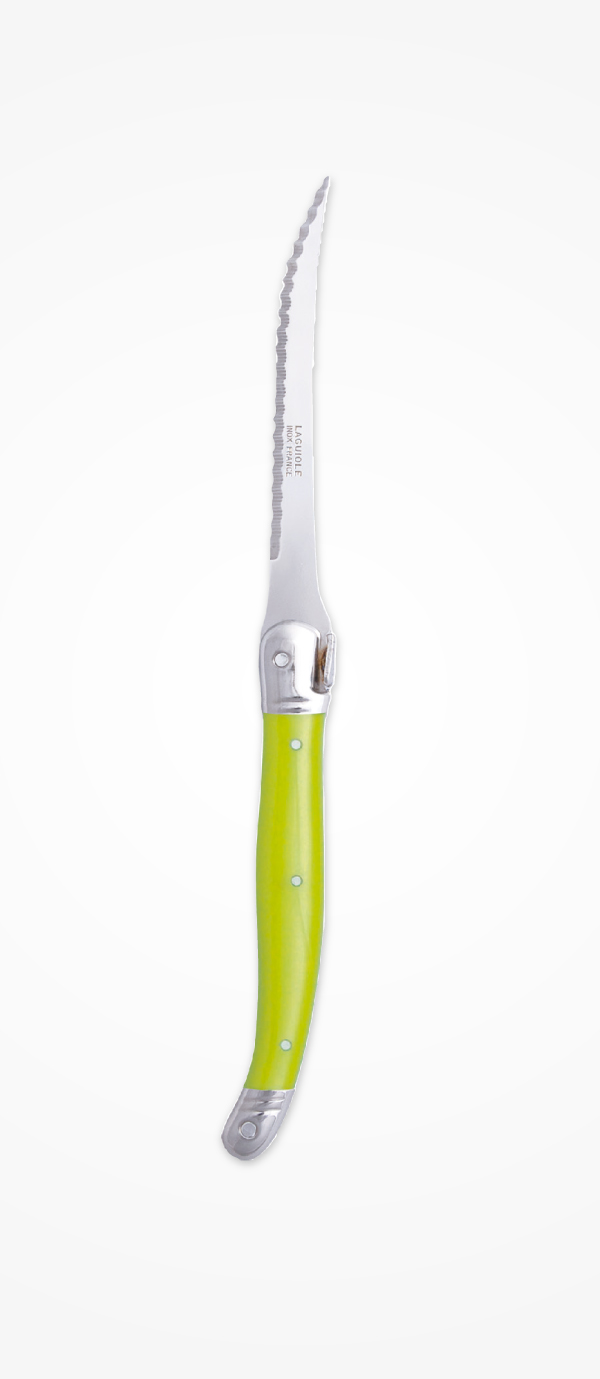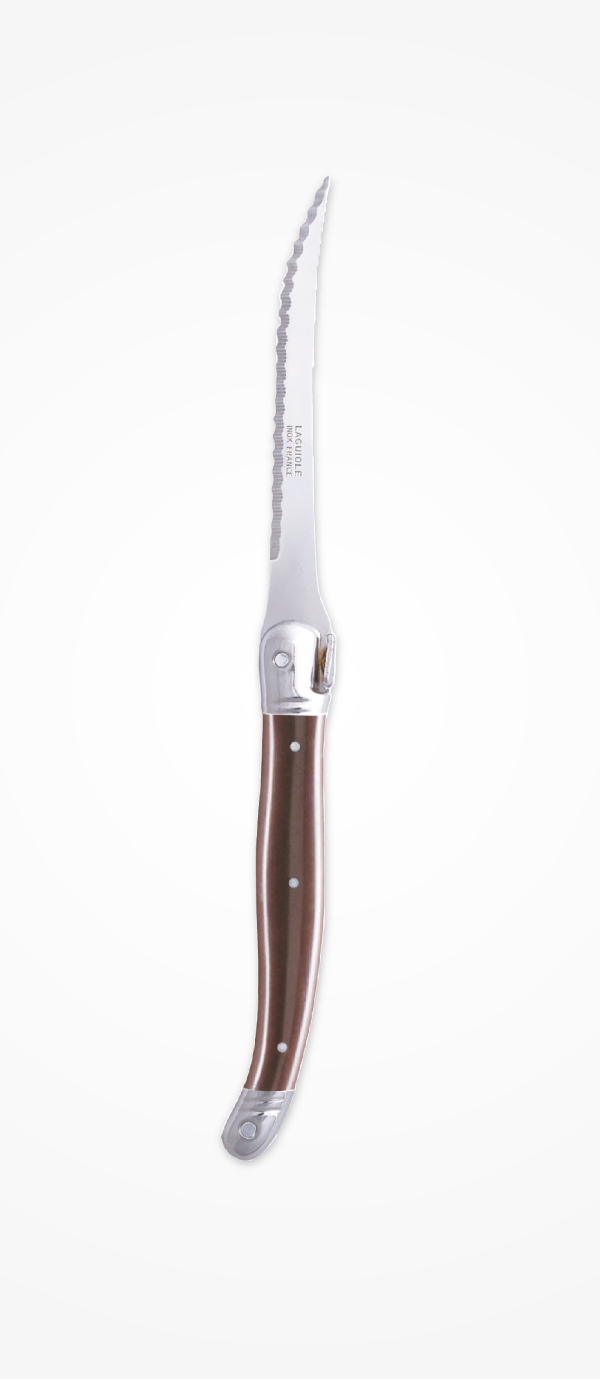 カーブ状の細身のナイフはカジュアルで軽やかなビジュアル。ステーキやチーズはもちろんのこと切りづらいミルフィーユや嵩のあるハンバーガーなども難なくカットします。