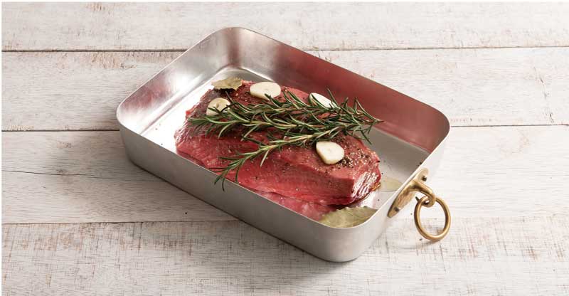 熱伝導性が良いので、野菜や肉、魚などをオーブン焼きに使用する他、水分がよく抜けるためデザートの焼き型としても活用いただけます。その他、食材などを入れたり、カトラリーボックスとして使用しても素敵です。側面に真鍮のリングがついているので使用後はフック掛けも可能で収納に場所をとりません。