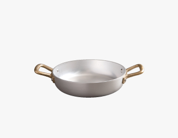 イタリアの伝統的なトラットリアなどで見かけるローストパン。アルミの熱伝導性を利用してフリッタータなどのスピーディに仕上げる料理に使われます。直火、オーブンでの調理が可能でそのまま食卓へサービスするのもイタリア式。 別売りで専用のフタもございます。
