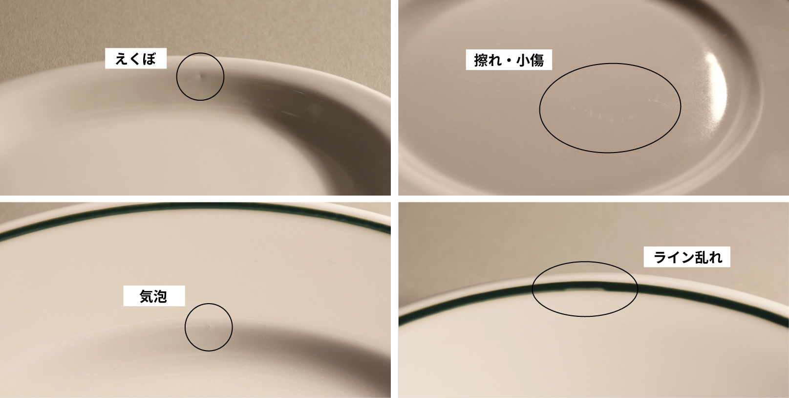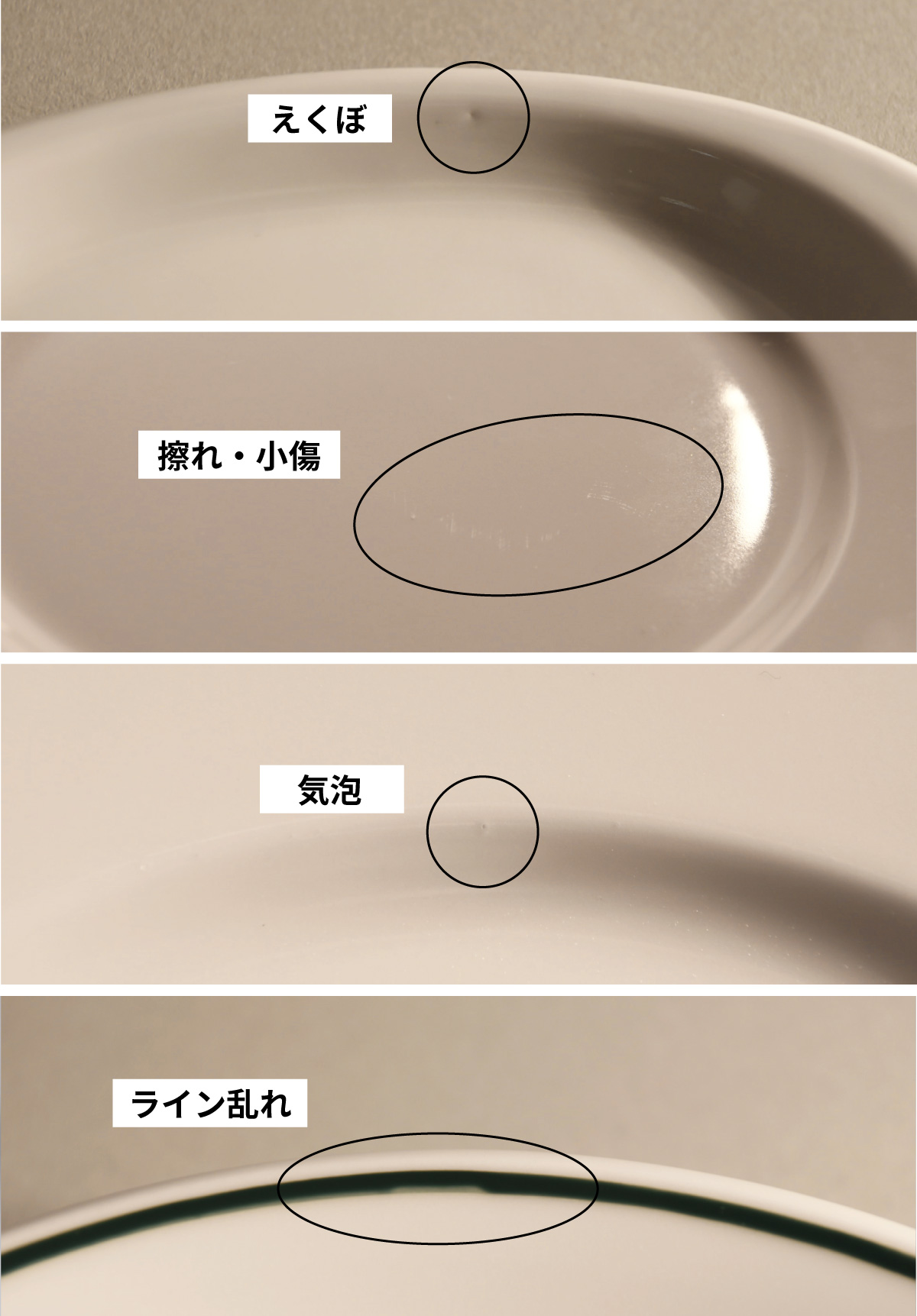また、糸尻には釉薬がかかっていないため製造工程で重ねた際、あるいは船便での輸送時に擦れ・小傷が入る場合があるほか、下記につきましても不良商品対象外とさせていただきます。