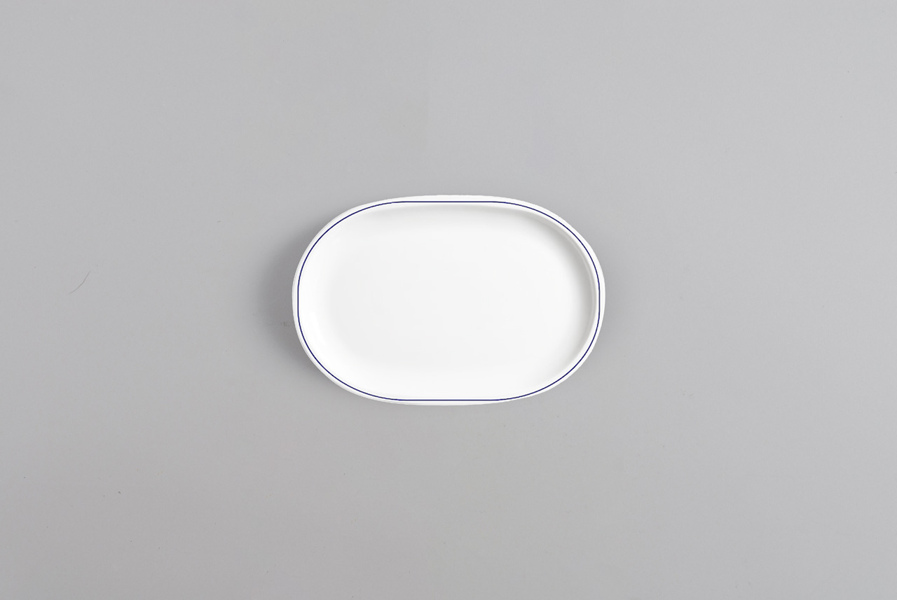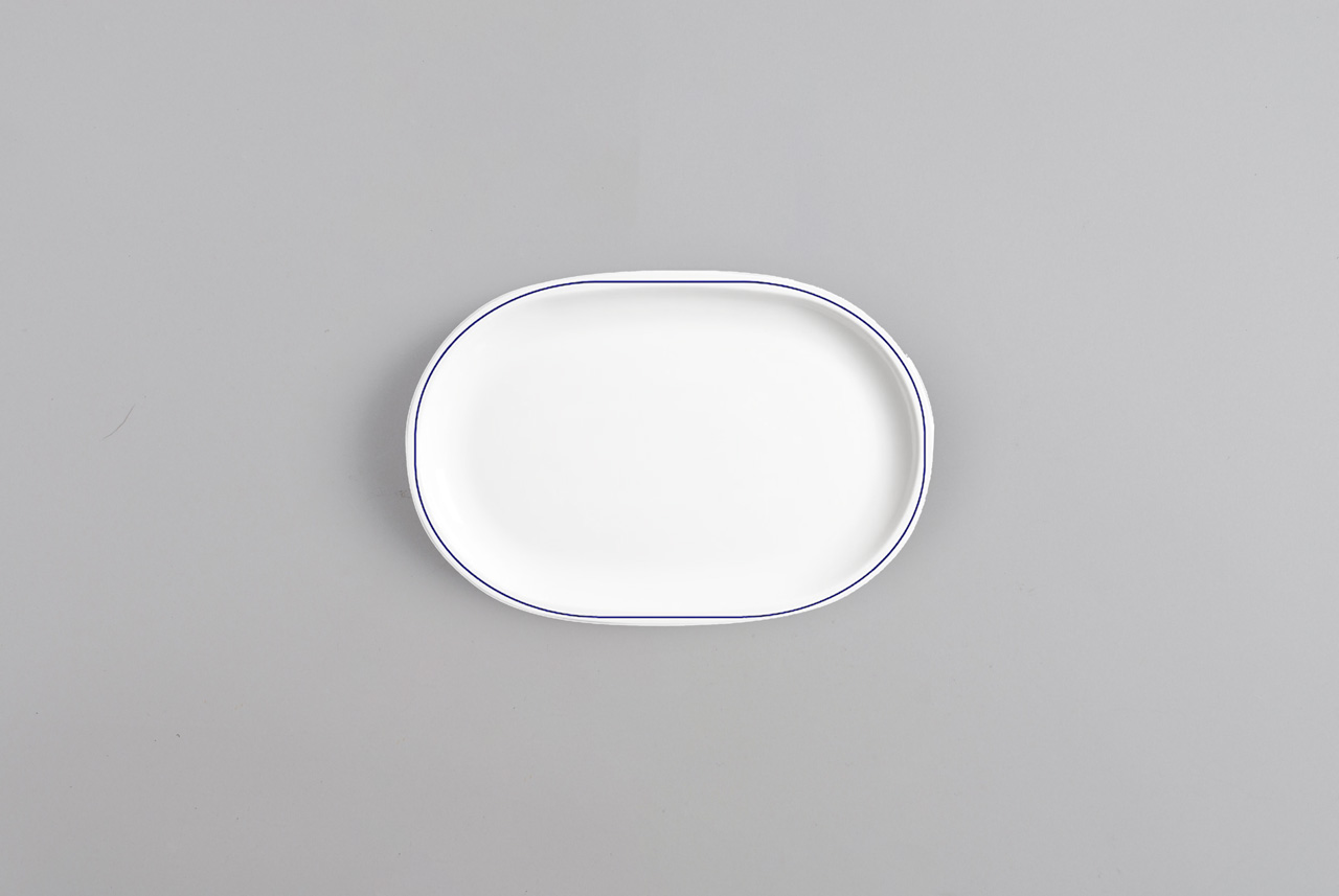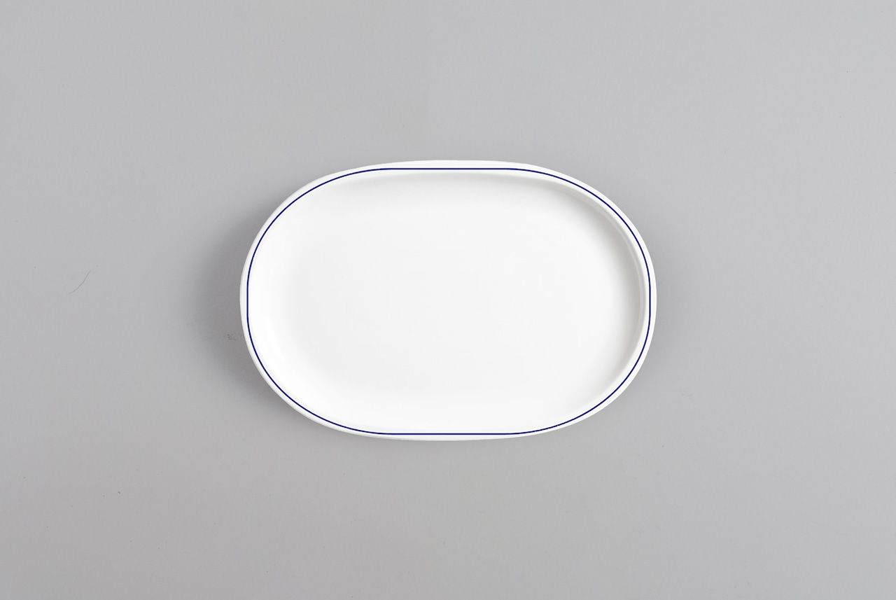 イタリアの食堂で愛用されている丸みのある楕円のプレート。フリットやパスタの複数盛り、食堂の定食風の盛り付けが似合う日常使いのプレートです。新しくブルーラインも加わり、ホットドッグやハンバーガー、パンケーキなど軽食のメニューにもご使用いただけます。