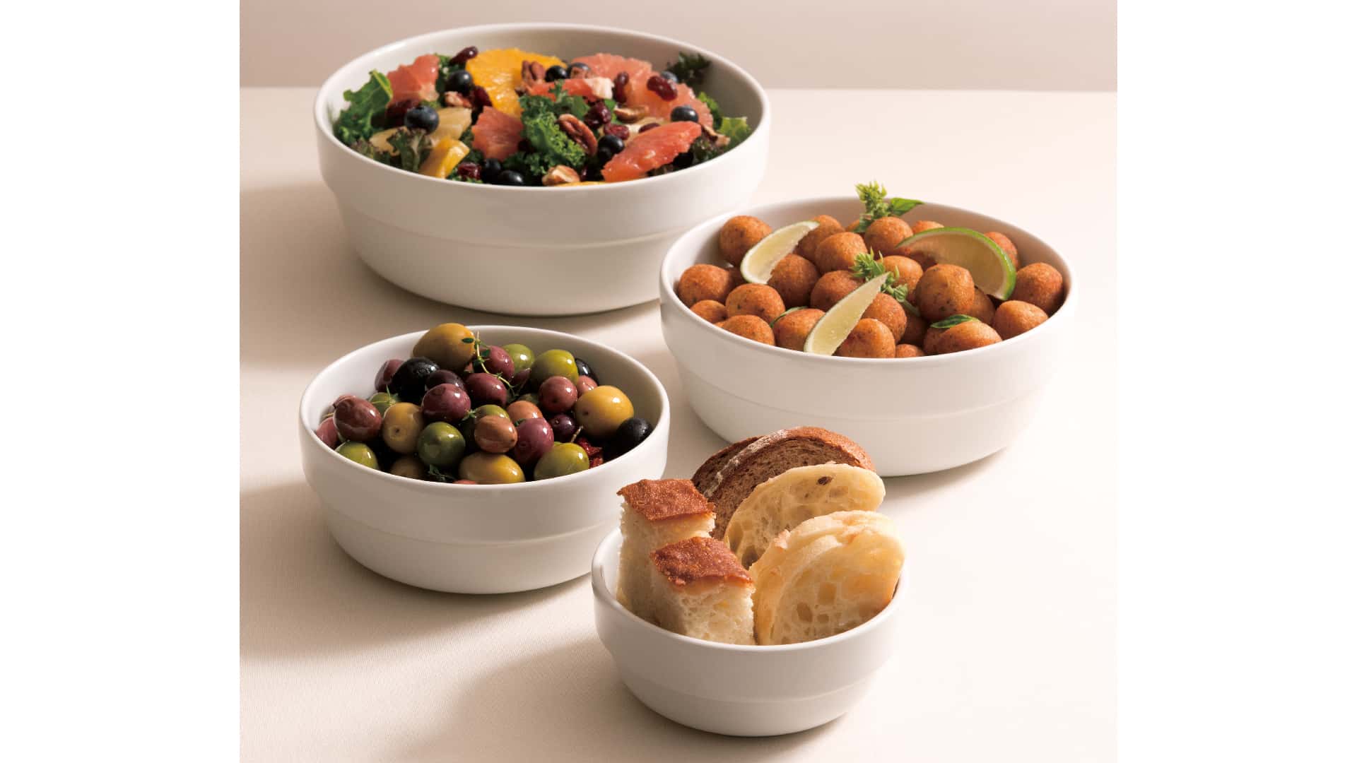 スタッキング(重ねる)することができ、パンを入れたり、お惣菜やサラダなどが盛り付けやすいボウルです。
