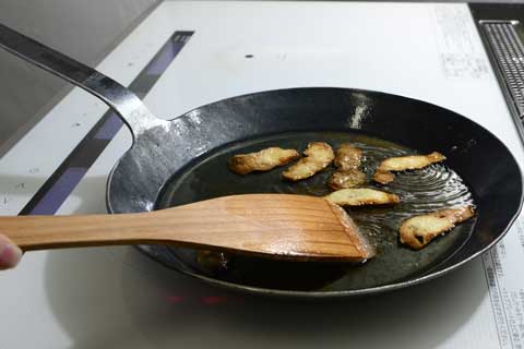 ここから加熱を始めます。 火加減は弱火。時折ゆっくりとターナーでかき混ぜます。