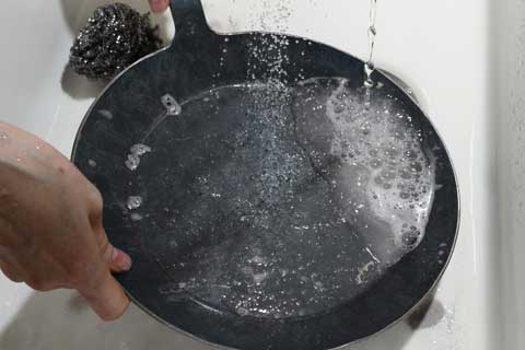 ざっと水で流してからクリームクレンザーと金たわしで洗います。