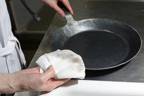 さらに火にかけて水分を完全に飛ばし、焼き慣らしが完成です。 このあとすぐに調理が始められます。